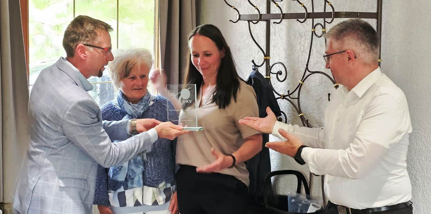 Markus Powill, 2. Vorsitzender des Baden-Württembergischen Karateverbands, bedankte sich für den unermüdlichen, vielfältigen Einsatz des Vereins in der Karateszene, sei es im erfolgreichen Wettkampfsport, im Kampfrichterwesen sowie der Durchführung von Prüfungen und Meisterschaften. Geehrt wurde der Verein für sein 50. Vereinsjubiläum und seine genauso lange Mitgliedschaft im Deutschen Karateverband (DKV). Markus Powill übereichte dem Verein hierfür die Ehrenurkunde für besondere Verdienste im Karate und den gläsernen Ehrenpokal.